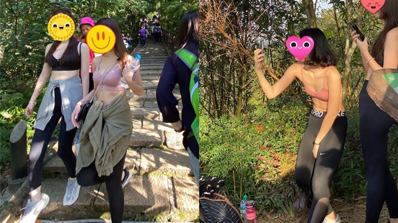 Cách đây không lâu, cư dân mạng Trung Quốc có đăng tải hình ảnh chụp hai cô gái ăn mặc mát mẻ khi đi leo núi. Họ mặc quần legging, đi giày thể thao, buộc áo trước bụng còn phần trên chỉ mặc bra thể thao. Sau đó, hai cô gái này còn cởi bỏ áo khoác khiến nhiều người chê trách là phản cảm do trang phục hở, lộ liễu quá mức nhìn giống như mặc áo ngực chứ không phải bra thể thao chuyên dụng, quần legging bó sát phản cảm.