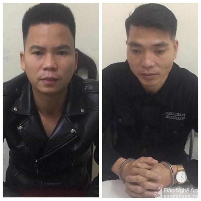 Nguyễn Văn Phương và Trần Xuân Sơn tại cơ quan công an - Ảnh: Báo Nghệ An.
