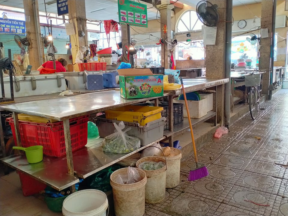 Một chủ quầy thực phẩm ở đây thông tin, sáng thứ 7, người dân tập trung mua hàng rất nhiều, gần như vơ vét hết hàng hóa ở chợ. Nhưng từ hôm qua và sáng nay thì không thấy ai. "Dân đã mua thực phẩm đủ dùng cho vài ngày từ hôm trước, nhiều tiểu thương nhập thêm hàng về bán nhưng giờ lại không có người mua, có người chán đóng quầy từ hôm qua đến giờ. Giờ quầy nào thực phẩm cũng tràn đầy đó", bà chia sẻ.