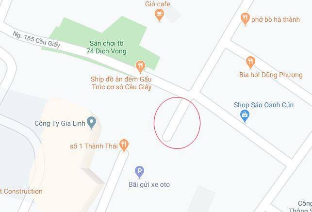 Vị trí con ngõ bị phong tỏa (vòng tròn đỏ).