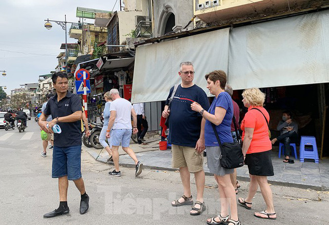 Một vài du khách nước ngoài dạo trên phố Hàng Đào vẫn không đeo khẩu trang phòng dịch