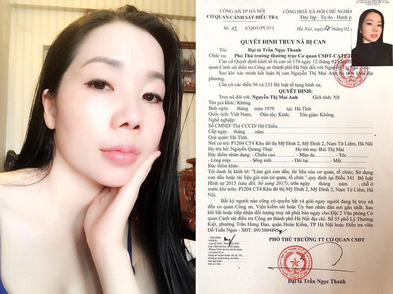 Vào cuộc điều tra, Công an TP Hà Nội ra quyết định khởi tố vụ án, khởi tố bị can đối với Mai Anh về tội danh đã nêu. Tuy nhiên, bị can đã bỏ trốn khỏi nơi cư trú.
