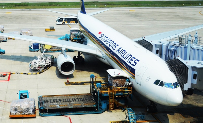 Chuyến bay SQ 176 của Singapore Airlines từ Singapore đến Nội Bài ngày 15/3 được cảnh báo có hành khách nhiễm COVID-19. Trong ảnh: Một chiếc máy bay của hãng Singapore Airlines trên sân bay Nội Bài, Việt Nam, 2018. (Ảnh minh họa: Peacefoo/Shutterstock)