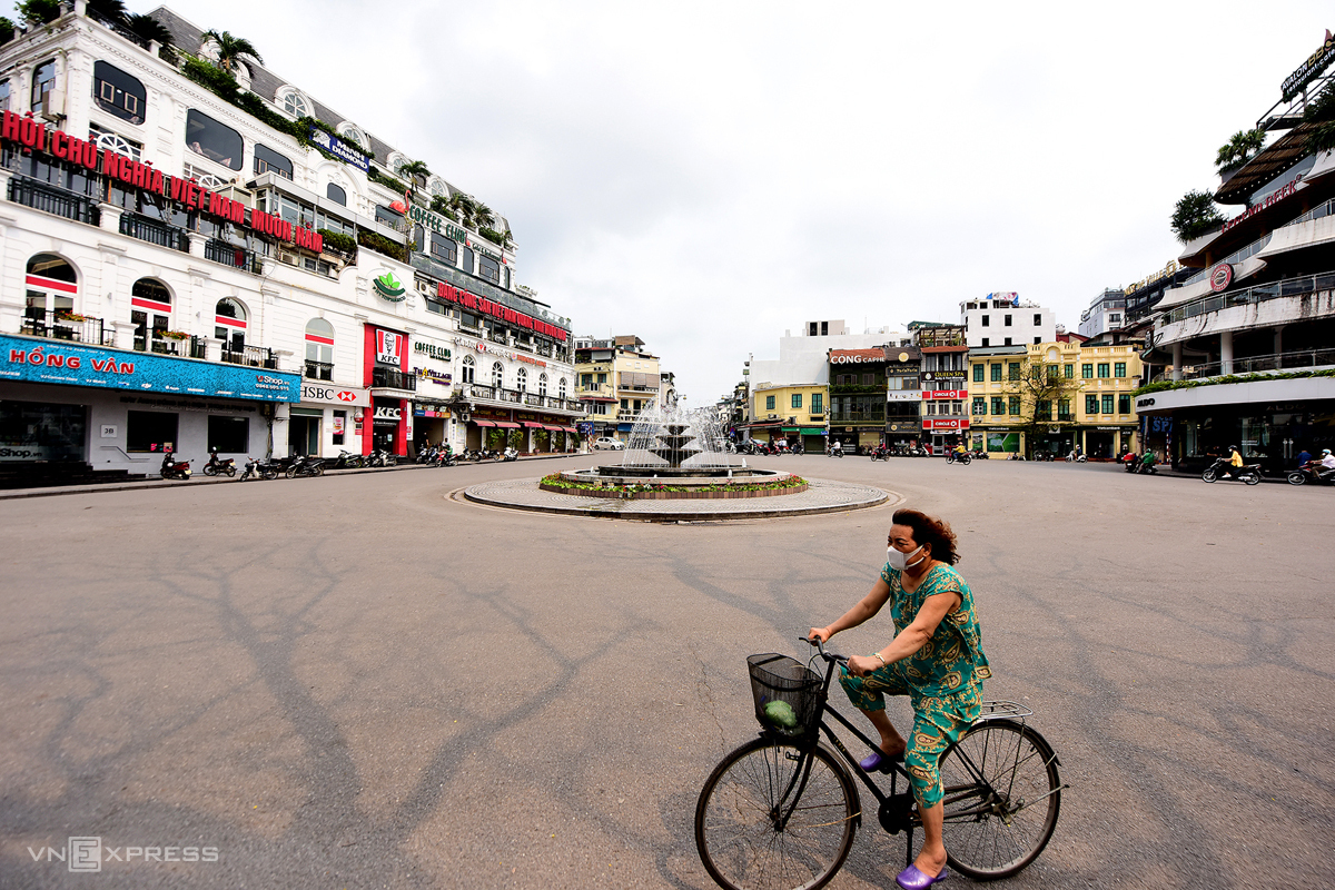 Quảng trường Đông Kinh Nghĩa Thục (quận Hoàn Kiếm, Hà Nội) vắng lặng sau quyết định đóng cửa cơ sở kinh doanh dịch vụ không thiết yếu, ngày 26/3. Ảnh: Giang Huy