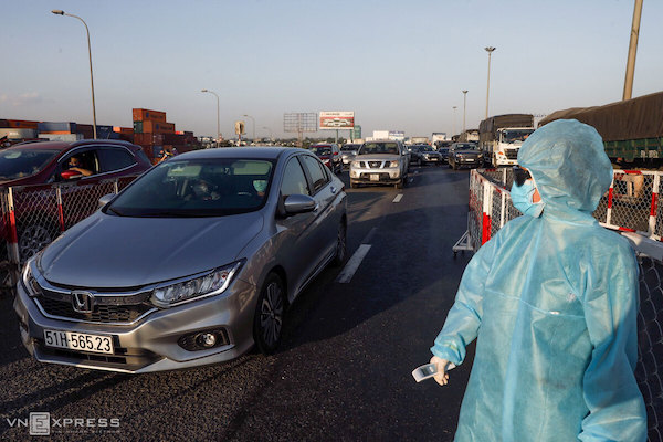 Khu vực chân cầu Đồng Nai (hướng về TP HCM) là một trong những trạm kiểm dịch chính. Tại đây, hàng loạt barie chia tuyến đường thành 5 làn dành cho từng loại xe tải, container, ôtô, xe máy đi vào. Gần đó, trạm kiểm tra y tế dã chiến rộng chừng 12 m2 được dựng lên.