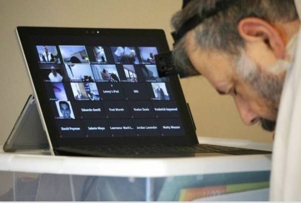 Một người đàn ông tham dự một cuộc họp trực tuyến qua ứng dụng Zoom trên máy tính bảng của mình. Ảnh: AP.