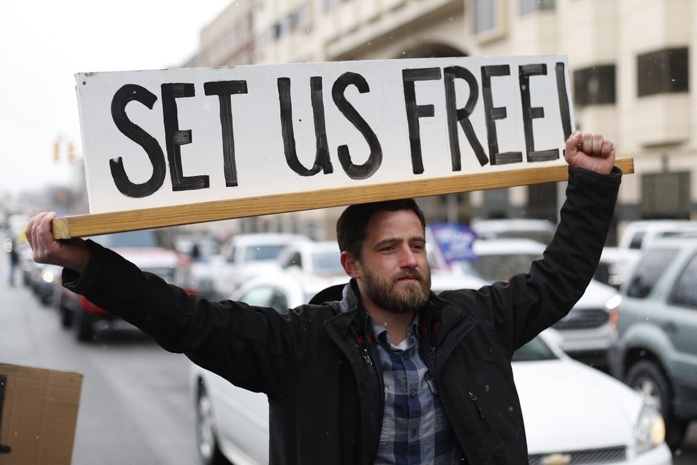 Sắc lệnh yêu cầu người dân ở trong nhà, được Thống đốc Gretchen Whitmer ban bố, có hiệu lực từ ngày 24/3 đến 13/4, sau đó được gia hạn đến ngày 30/4, khiến hàng nghìn người đổ về thủ phủ bang Michigan, lái ôtô chặn đường làm giao thông tê liệt. Hàng trăm người đến tận tòa nhà thống đốc phản đối lệnh cấm ra đường để ứng phó dịch bệnh.