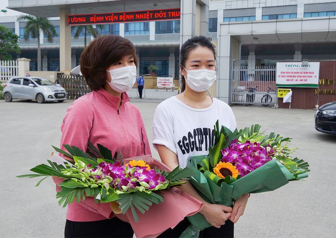 Ngày 15/4, "bệnh nhân 59" Lê Thị Quyên và "bệnh nhân 46" Nguyễn Thùy Dung - hai tiếp viên của Vietnam Airlines, ra viện sau hơn một tháng điều trị và cách ly tại Bệnh viện nhiệt đới Trung ương 2.