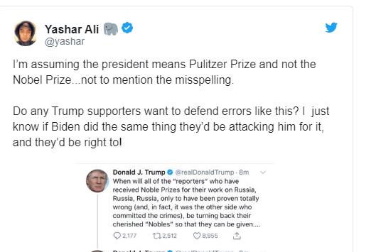 THE GUARDIAN: Tump tweet sai "nobel" thành "noble"