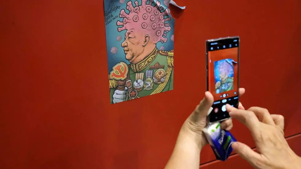 Ảnh chế Tập Cận Bình và virus corona trên một bức tường ở Hồng Kông, ngày 26/04/2020. © REUTERS/Tyrone Siu