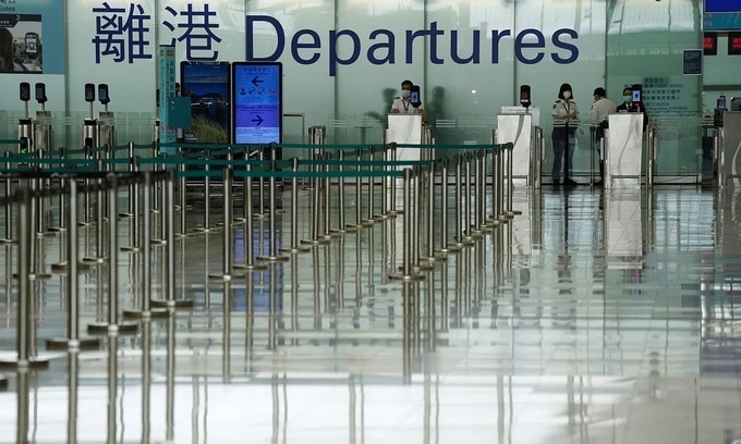 Ga đi của sân bay quốc tế Hong Kong vắng lặng trong mùa dịch. Ảnh: SCMP