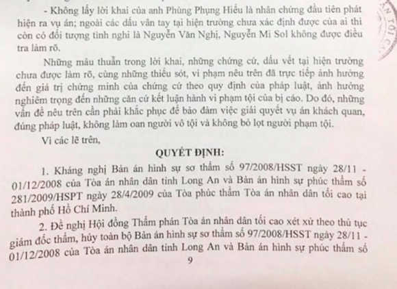 Quyết định của Viện KSND Tối cao khẳng định Nguyễn Văn Nghị là kẻ tình nghi – Ảnh: Anh Vũ-Một Thế Giới