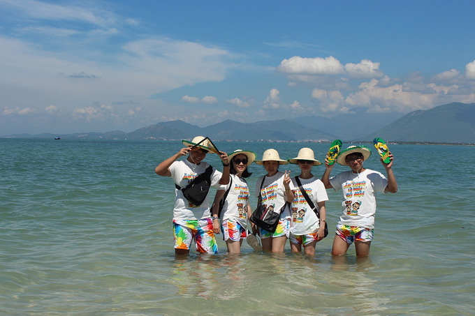 Nhiều du khách tự lên kế hoạch tham quan, chỉ mua dịch vụ lưu trú và vận chuyển. Trong ảnh, nhóm bạn trẻ đến từ TP HCM tham quan lối đi bộ trên biển Điệp Sơn (Khánh Hòa). Ảnh: Nguyễn Nam.