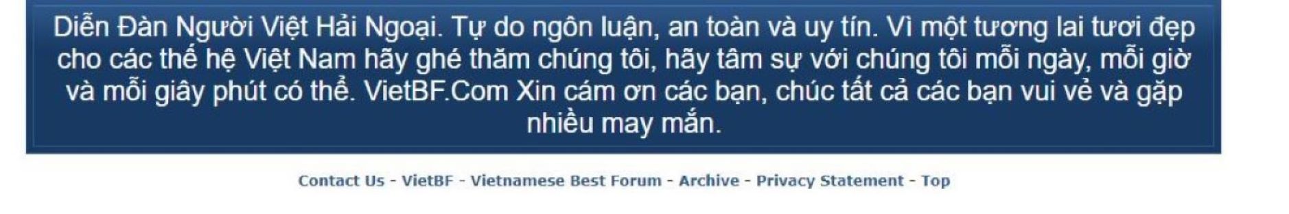VietBF đảm bảo tự do ngôn luận. Quý vị có thể an tâm sử dụng.