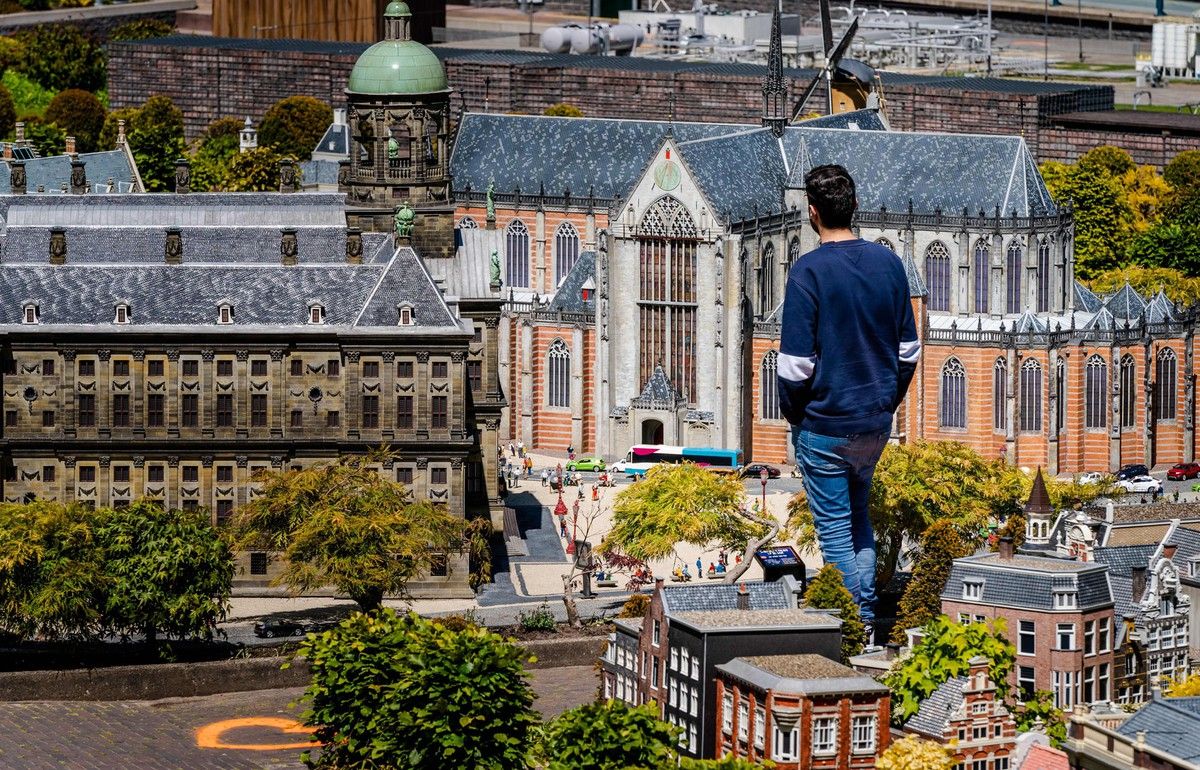 Du khách đi bộ qua công viên giải trí thu nhỏ Madurodam sau khi Chính phủ cho phép mở cửa trở lại một số hoạt động công cộng, những nơi trước đó đã bị đóng cửa do đại dịch Covid-19, ở La Haye Hollande ngày 18/5.