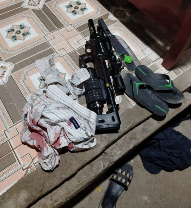 Thấy vậy, người nhà ông Đủ gần đó và hàng xóm đã cầm theo gậy gộc chạy sang đánh rơi súng đối tượng. Cường hoảng sợ vứt lại hung khí bỏ trốn.