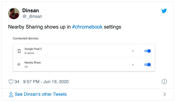 Được đặt tên ban đầu là “Fast Share”, câu trả lời của Android với AirDrop đã được Google phát triển trong suốt hơn một năm trở lại đây, theo XDA Developers. Nearby Share được kì vọng sẽ được chuyển tới tay người dùng thông qua kho ứng dụng Play Store. Điều đáng nói là những đoạn mã hiện tại cho thấy nó không chỉ hoạt động trên các thiết bị di động Android mà còn hỗ trợ dòng máy tính Chromebooks và thậm chí các thiết bị máy tính có dùng trình duyệt Chrome của Google.