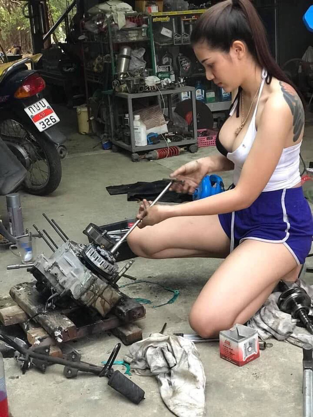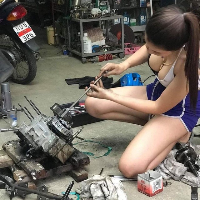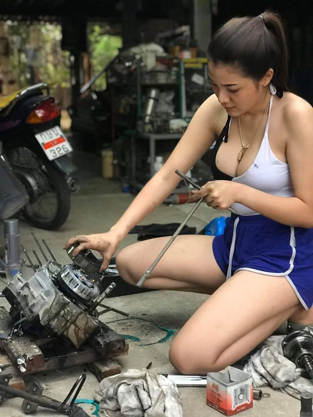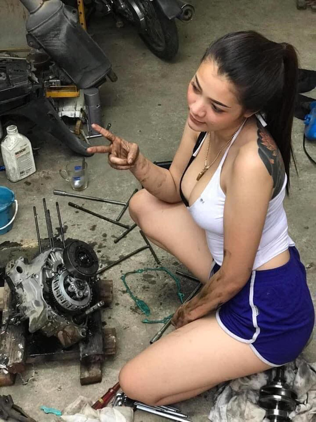 Thật sự chẳng ai nghĩ đây là công việc phù hợp với phái yếu, đặc biệt là với những cô gái xinh đẹp, gợi cảm khi một cô gái xinh đẹp ăn vận gợi cảm ngồi sửa xe máy rất chuyên nghiệp khiến cộng đồng mạng xôn xao, hào hứng xin info. Mặc dù chưa nhìn rõ mặt của nhân vật, thế nhưng không ai hoài nghi đây là một cô gái xinh đẹp.