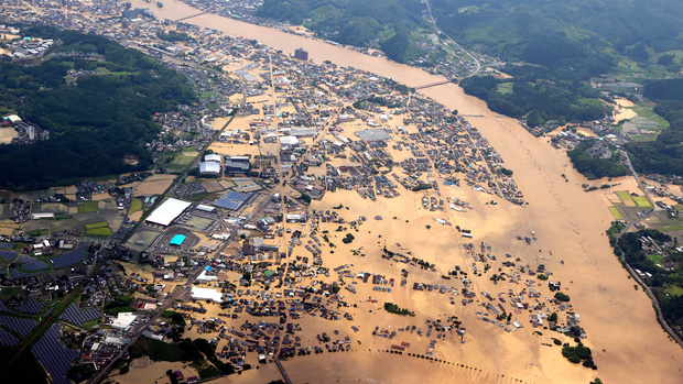 Trận mưa lớn chưa từng thấy vào ngày 4/7/2020 đã khiến cho nhiều tỉnh trong vùng Kyushu, phía Tây Nam Nhật Bản chìm trong nước lũ. Theo Japantimes, có 15 người được cho là đã chết, 9 người mất tích và 1 người bị thương nặng.