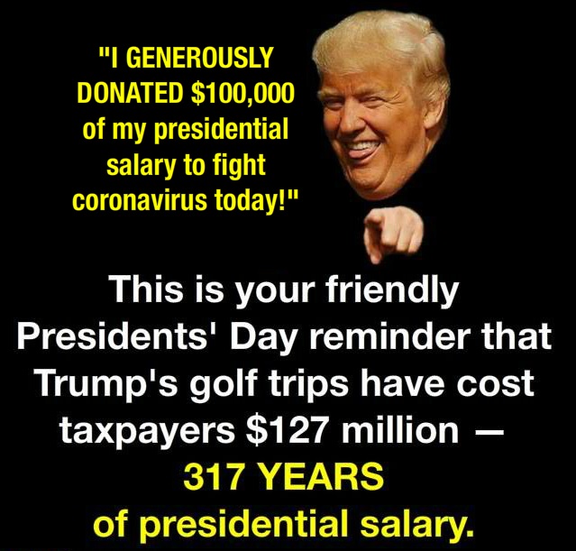 Yêu cầu cụ Trum trả lại hàng trăm triệu đô la ăn cắp từ tiền thuế của người dân để hoang phí vào những lần đánh golf vô bổ vô tích sự vô trách nhiệm!