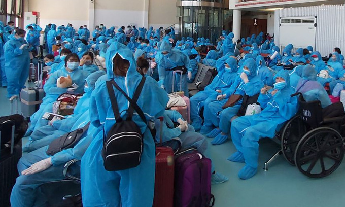 Hơn 300 công dân Việt Nam mắc kẹt ở Đài Loan do Covid-19 về nước trên chuyến bay hạ cánh ở sân bay Tân Sơn Nhất hôm nay.