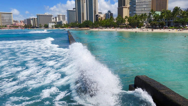 Waikiki nổi tiếng thế giới với những con sóng lớn hung dữ, nhưng trên một phần của bãi biển Honolulu, một đê chắn sóng đã được xây dựng và gọi là nơi trú ẩn "Waikiki Wall", những người yêu thích bơi lội có thể yên tâm ngâm mình trong hồ bơi nước biển khổng lồ tuyệt diệu này.
