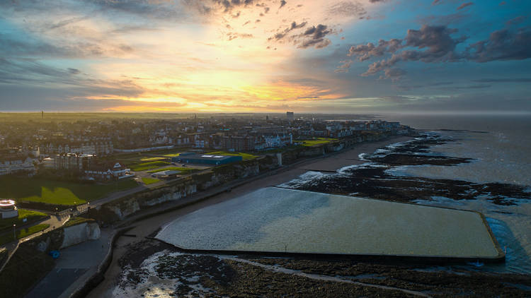 Đi dạo dọc bờ biển từ thị trấn Margate bên bờ biển nước Anh và bạn sẽ đến Vịnh Walpole, nơi có một hồ thủy triều rộng lớn trải dài bên dưới những vách đá của Kent. Được xây dựng vào năm 1937, đây là một bãi tắm phổ biến và là nơi tuyệt vời nhất để đón ánh hoàng hôn rực rỡ bất tử của JMW Turner.