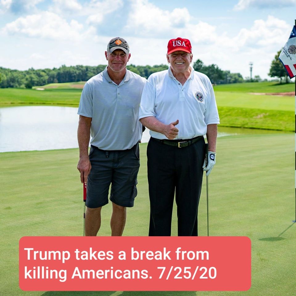 07/25/2020 Saturday 23:59 Trump Natl, Bedminster, NJ Yes 12:00 am-11:59 pm 265 128 2445:03 With Brett Favre, 980 dead today