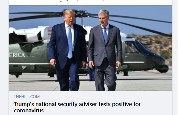 Cố vấn an ninh quốc gia của Tổng Thống Trump dương tính với COVID-19