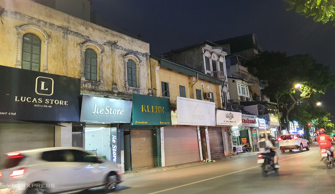 19h tối thứ hai (ngày 27/7), hơn 3 tháng sau khi Hà Nội hết cách ly, trục Phố Huế, Hàng Bài dài gần 2 km vẫn chưa trở lại nhộn nhịp người mua kẻ bán như trước. Nhiều nhà đóng cửa nghỉ bán hoặc treo biển cho thuê mặt bằng.Tuyến phố Hàng Bông, Hàng Gai vốn kinh doanh mặt hàng lụa, đồ thủ công, áo quần cũng tĩnh lặng với hàng loạt dãy cửa cuốn cũng được kéo sập. Chủ cửa hàng áo quần số 12 Hàng Bông cho biết đã chuyển địa điểm kinh doanh sang phố Hàng Mành. "Giá thuê mềm hơn, không khí kinh doanh cũng ít ảm đạm hơn chỗ cũ", chị này nói.