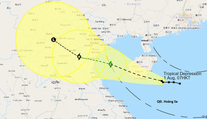 Rạng sáng 1/8, vị trí trung tâm áp thấp nhiệt đới nằm trên vùng biển phía tây bắc quần đảo Hoàng Sa có sức gió vùng gần tâm mạnh cấp 6-7, giật cấp 9. Bán kính gió mạnh cấp 6, giật cấp 8 trở lên khoảng 100 km tính từ tâm.