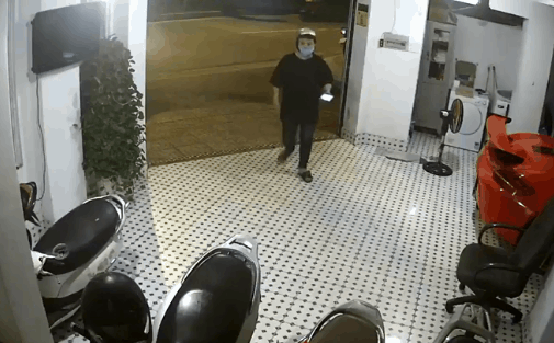 Thế nhưng khi vừa mon men qua cửa, hắn ta đã ngã oạch xuống nền. Sợ phát hiện, tên trộm vội quay ra ngoài, lên xe đồng bọn bỏ chạy.