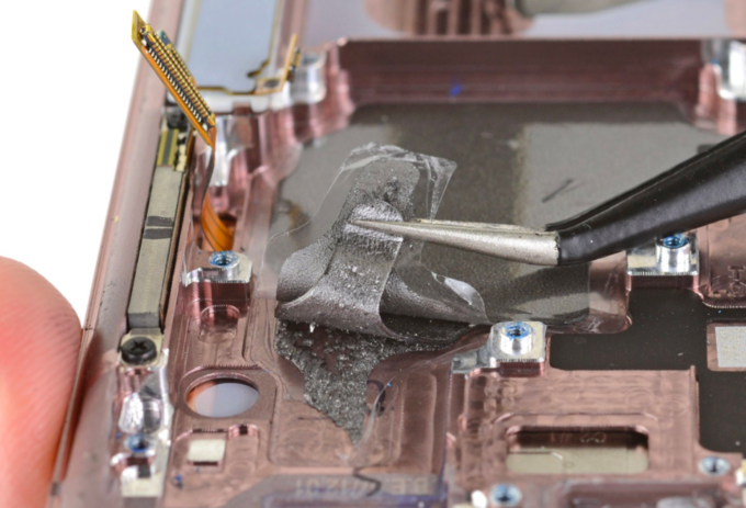 Samsung trang bị thêm cho Galaxy Note20 lớp hợp chất than chì để tản nhiệt. Ảnh: iFixit.