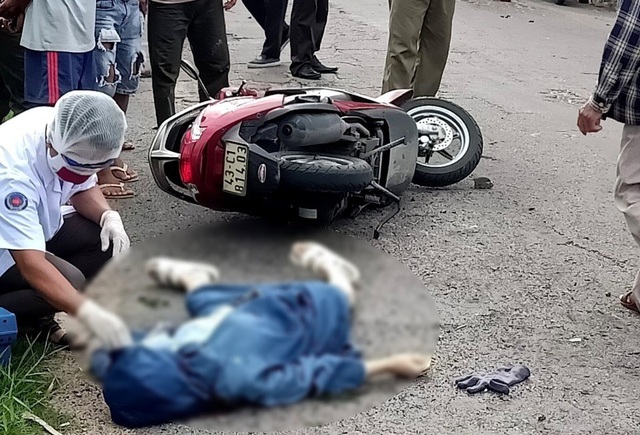 Đang đi trên đường từ thị xã Điện Bàn về thành phố Hội An thì người phụ nữ đi xe máy bị tiếng nổ bên đường phát ra từ đám cháy ngã ra tử vong tại chỗ.