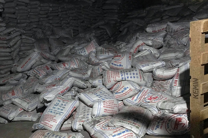 Các dãy bao phân đổ sập trong nhà kho ga Sóng Thần tối 12/9. Ảnh: Thái Hà.