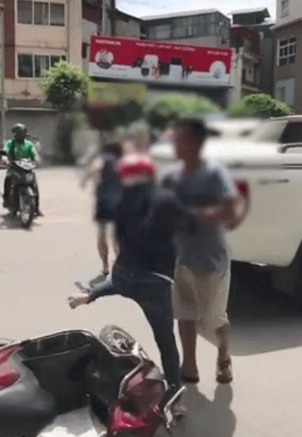 Tuy nhiên, tranh thủ lúc này, người phụ nữ ngồi trên ô tô vội vàng xách guốc xuống xe. Sau đó chạy chân không khỏi hiện trường. Người vợ đang muốn đuổi theo giữ lại nhưng đã bị anh chồng cầm tay ngăn cản. Lúc sau thấy vợ còn bức xúc, người chồng nổi nóng văng tục chửi bới cho rằng vợ "làm trò mèo". Thấy người chồng tỏ thái độ với vợ, không ít người tiến lại "dằn mặt" bênh vực thấy vậy người chồng mới im lặng bỏ ra xe ô tô.