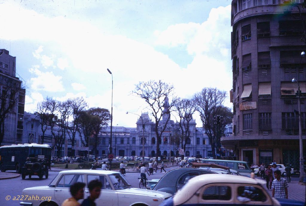 Saigon 1964 – Công trường Chiến sĩ (trước khi có Hồ Con Rùa) nhìn từ đường Trần Quý Cáp (Nay là Võ Văn Tần), bên phải là ra Nhà thờ Đức Bà – Photo by Iparkes