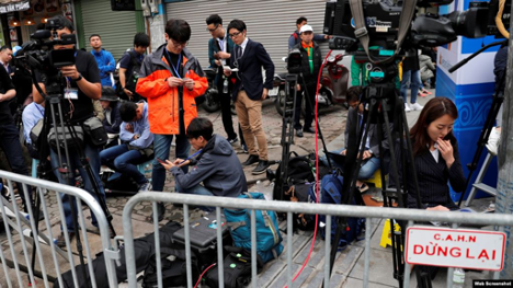 Các phóng viên Việt Nam và quốc tế theo dõi cuộc gặp thượng đỉnh Mỹ - Triều Tiên tại Hà Nội năm 2019 (VOA)