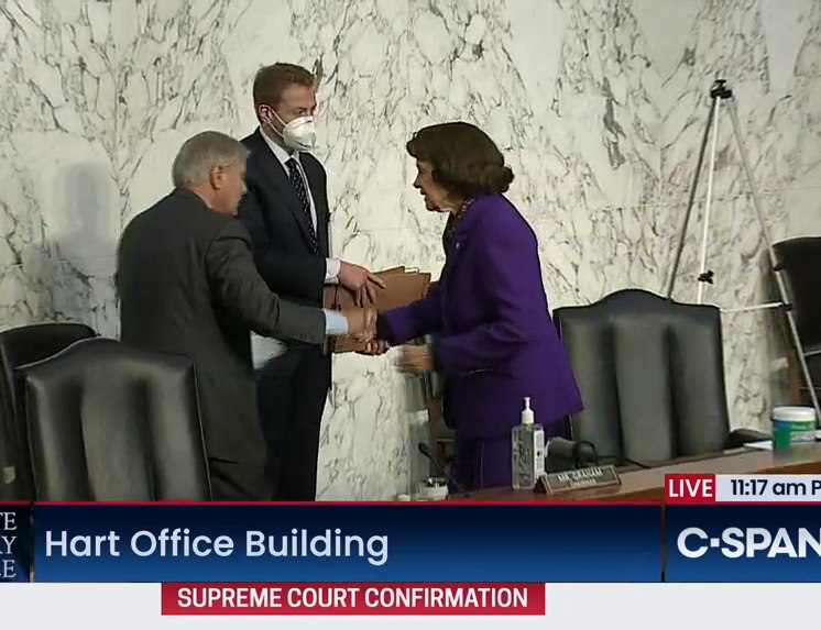 Thượng nghị sĩ Dianne Feinstein đã kết thúc phiên điều trần xét duyêt Thẩm Phán Amy Coney Barrett bằng cách cảm ơn Chủ tịch Ủy ban Tư pháp Thượng viện Lindsey Graham vì đã tổ chức “một trong những phiên điều trần hay nhất mà tôi đã tham gia”. Bà nói. Cả hai sau đó bắt tay và thậm chí ôm nhau.
