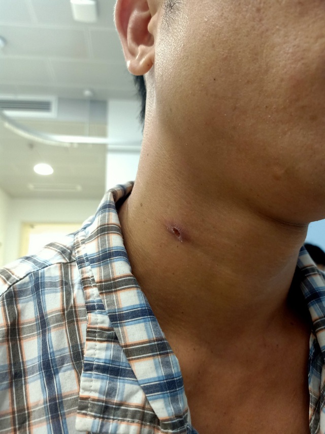 Vết thương ở cổ bệnh nhân trước khi phẫu thuật.