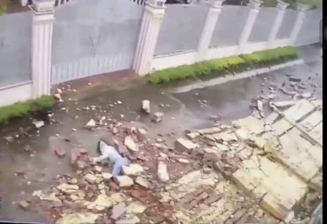 Old  Default Đứng tim chứng kiến khoảnh khắc gió mạnh thổi bức tường đổ đè cô gái bất tỉnh