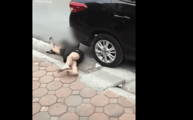 Old  Default "Bà điên" nằm vật vã ăn vạ, gào thét dưới gầm ô tô khiến đám đông không dám di chuyển