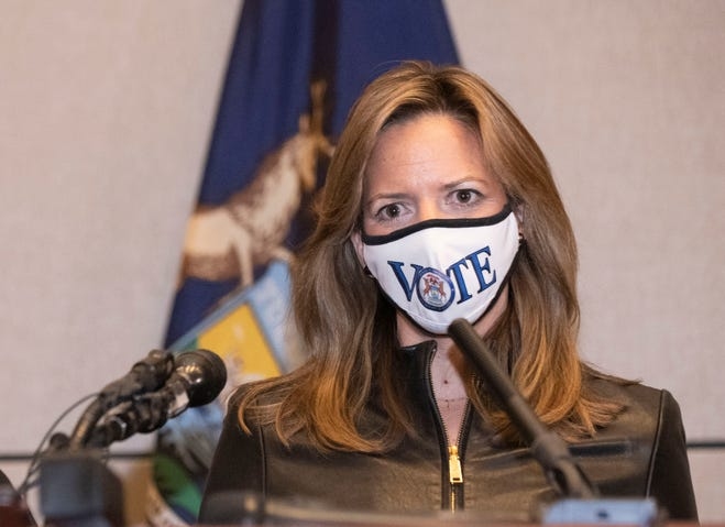 Tổng thư ký bang Michigan Jocelyn Benson trong cuộc họp tại thành phố Detroit hôm 3/11. Ảnh: Detroit News.