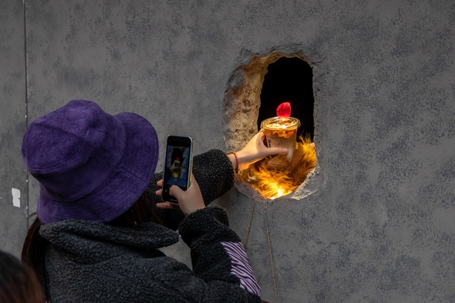 Từng cốc cafe được đưa ra ngoài thông qua lỗ thủng nham nhở trên bức tường xám xịt. Đó là khung cảnh nhìn từ bên ngoài của một quán cafe đặc biệt ở Thượng Hải (Trung Quốc), đang gây sự chú ý trên mạng xã hội thời gian vừa qua.