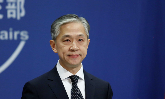 Phát ngôn viên Bộ Ngoại giao Trung Quốc Uông Văn Bân tại buổi họp báo ở Bắc Kinh tháng trước. Ảnh: Reuters.