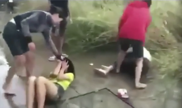 Hai em nữ sinh bị đánh dã man vì cho rằng đã nhìn đểu "đối phương" (ảnh cắt từ clip)