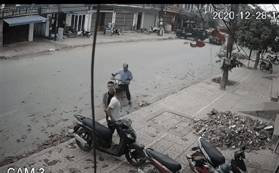 Riêng xe tải bị móp đầu. Sau cú tông mạnh, chiếc xe vẫn tiếp tục lao về phía trước, tông đổ xe máy đang chuẩn bị di chuyển. Người đàn ông cầm lái may mắn né kịp. Còn 2 thanh niên đứng gần đó vội vàng bỏ chạy.