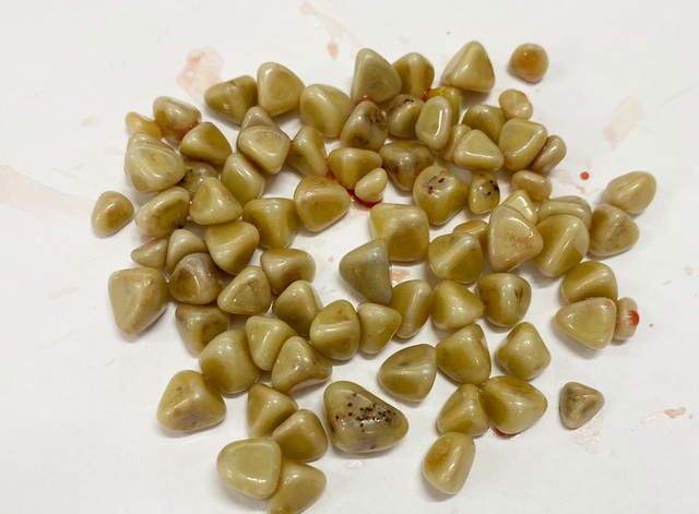Những viên sỏi như hình hạt ngô được lấy ra từ túi mật của người bệnh