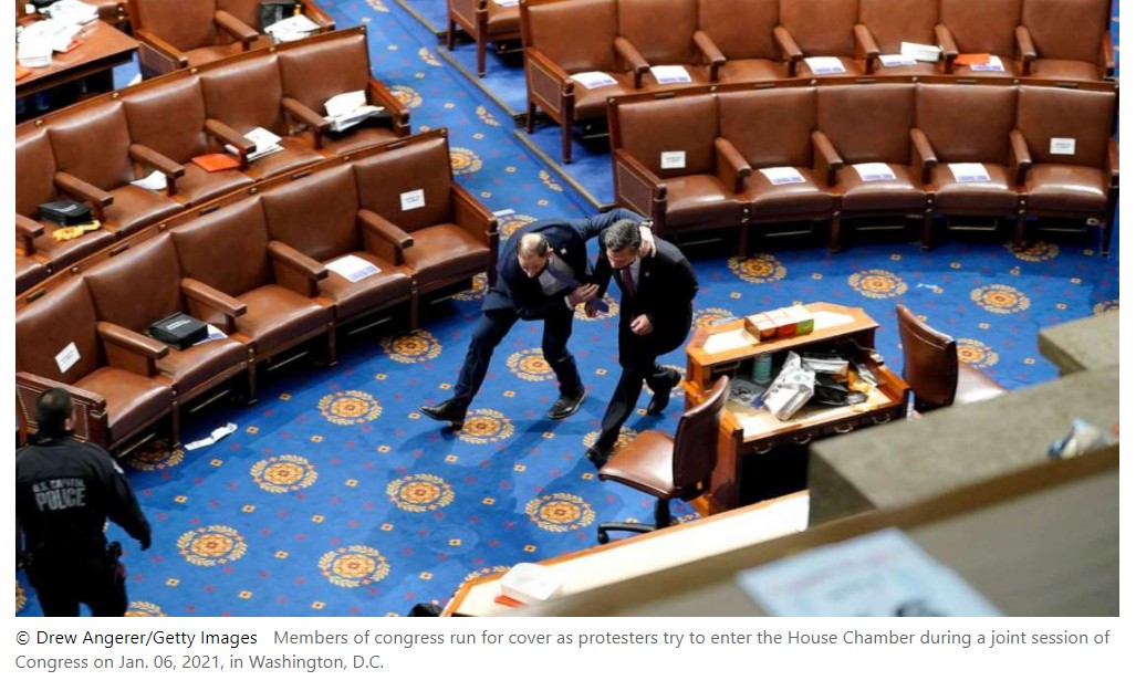 Hàng trăm người ủng hộ Trump đã vượt qua hàng rào kim loại ở phía sau của tòa nhà Capitol vào khoảng 1 giờ chiều thứ Tư, Washington Post đưa tin. Họ vượt nhân viên an ninh và phá hàng rào trong khi hô vang “USA! USA!"