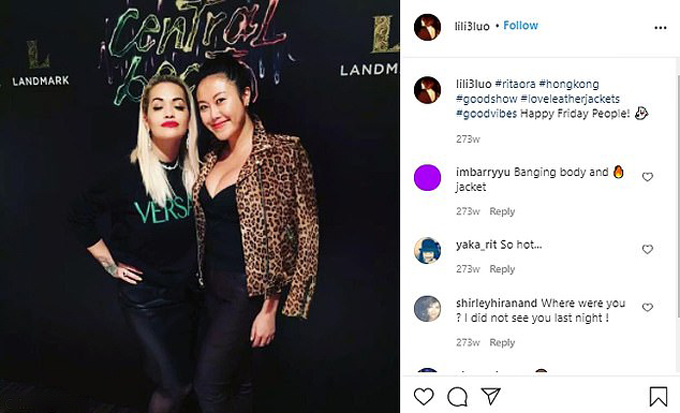 La Lực Lực (phải) chụp ảnh cùng Rita Ora. Ảnh: Instagram.
